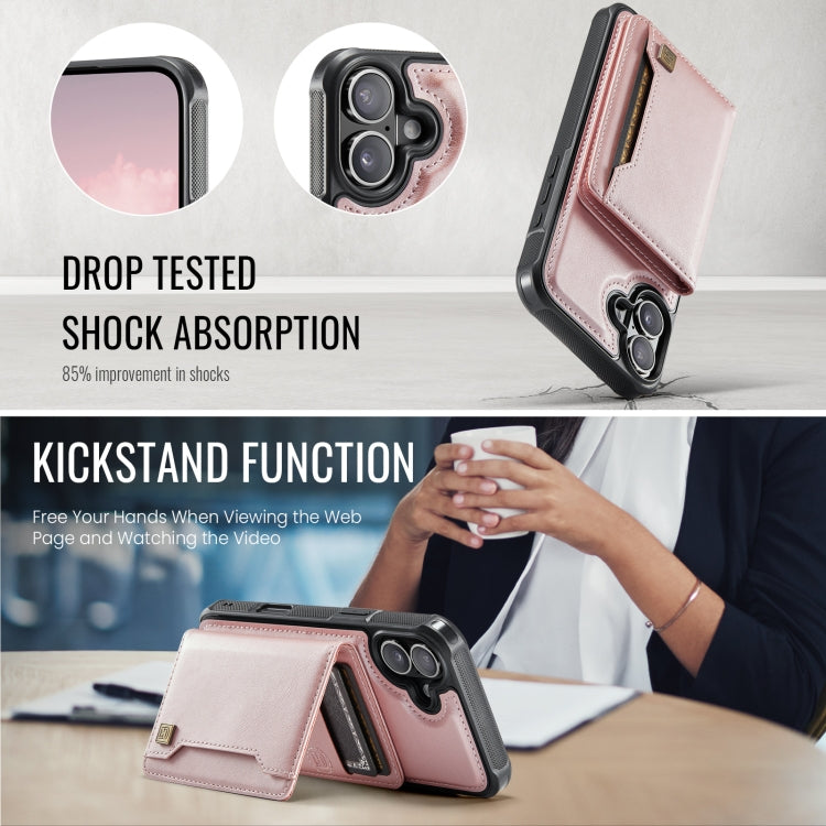 For iPhone 16 AutSpace A13 MagSafe Magnetic RFID Flip Card Bag Phone Case(Rose Gold)