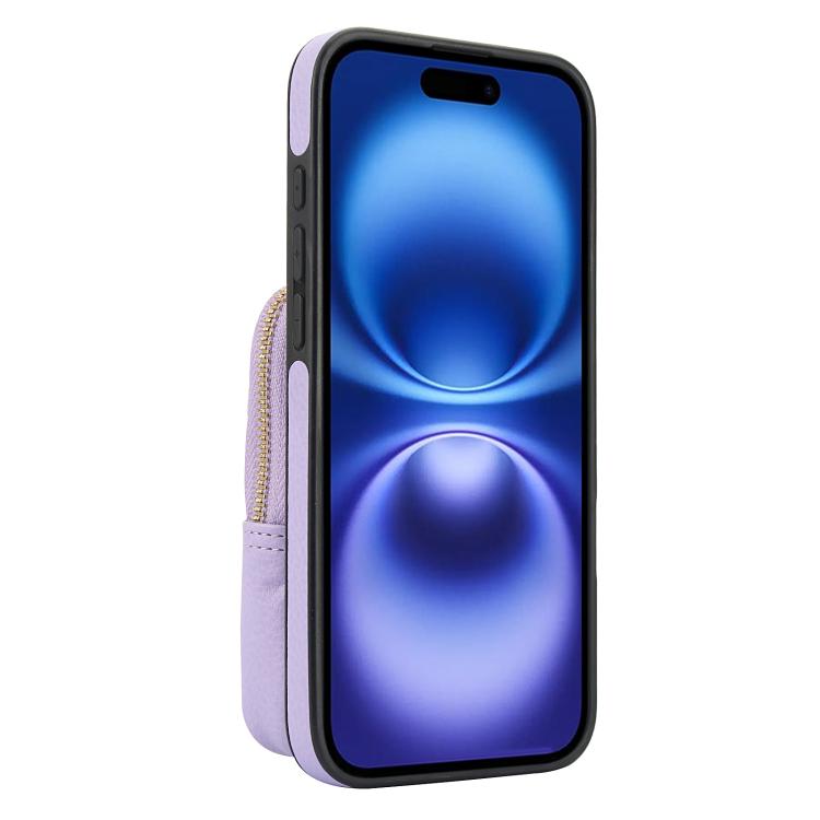 For iPhone 16 AwQuer Crossbody Zipper Wallet Bag Litchi Leather Phone Case(Light Purple)