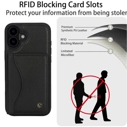 For iPhone 16 AwQuer Horizontal Flip Card Bag Holder Leather Phone Case(Black)
