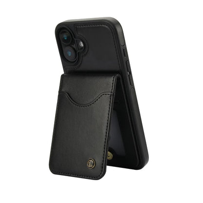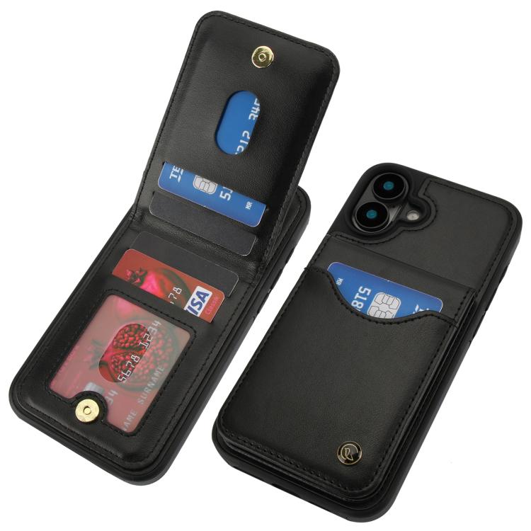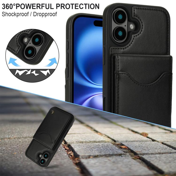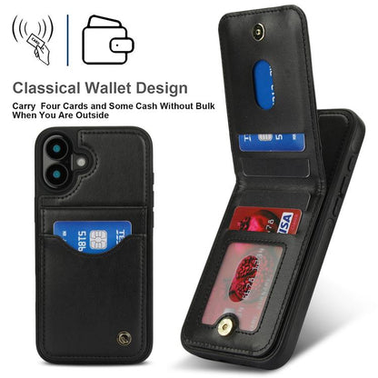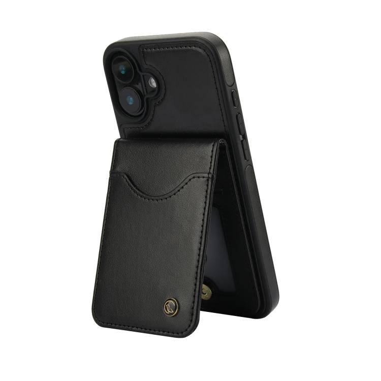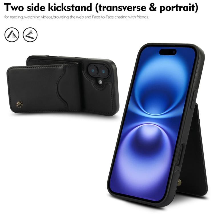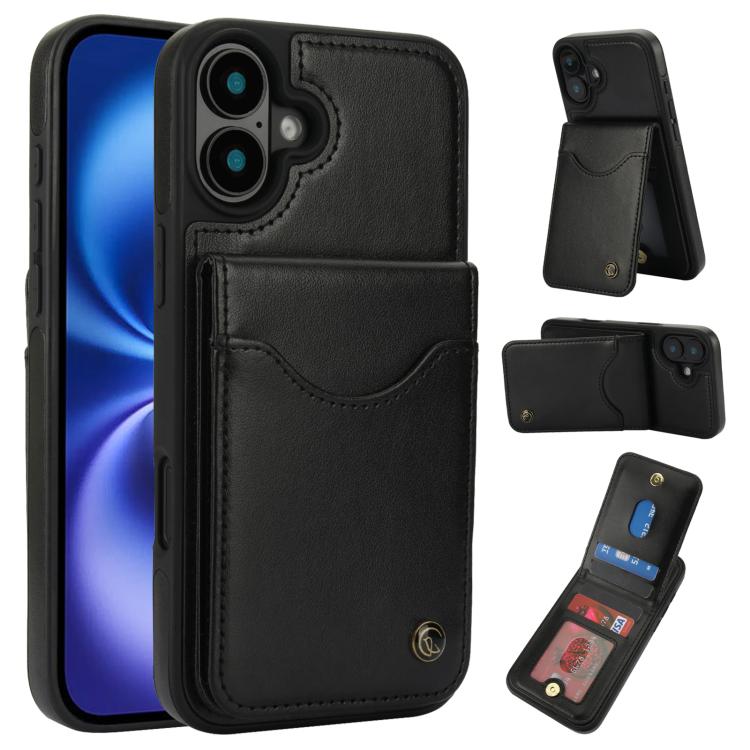 For iPhone 16 AwQuer Vertical Flip Card Bag Holder Leather Phone Case(Black)