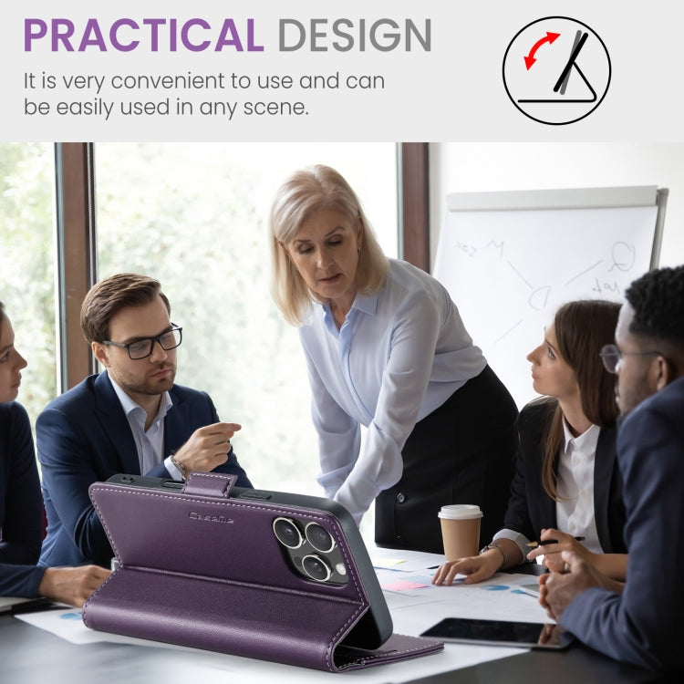 For iPhone 16 Pro CaseMe 023 Butterfly Buckle Litchi Texture RFID Anti-theft Leather Phone Case(Purple)