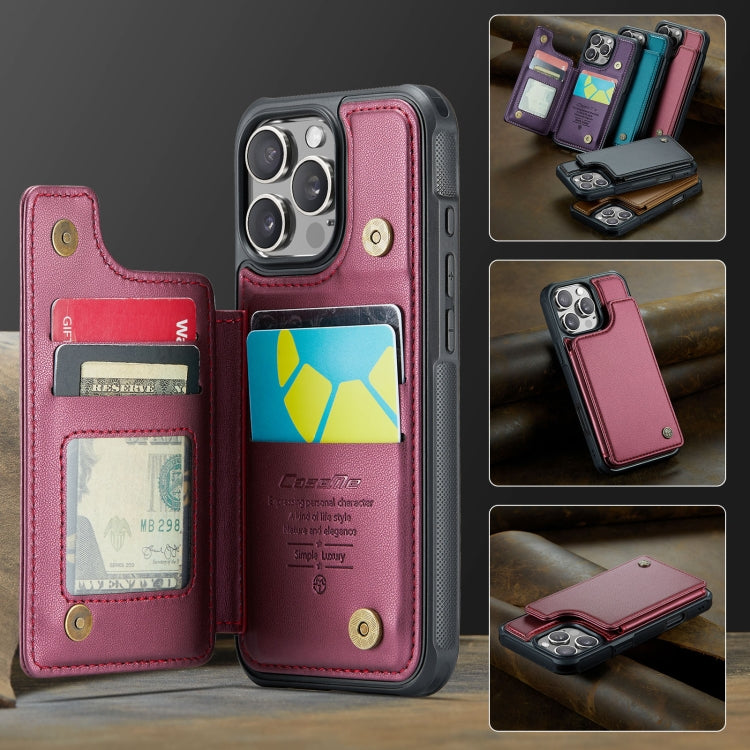 For iPhone 16 Pro CaseMe C22 Card Slots Holder RFID Anti-theft Phone Case(Red)