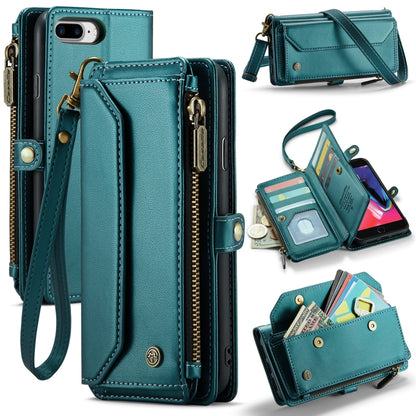 For iPhone 8 Plus / 7 Plus / 6 Plus CaseMe C36 Card Slots Zipper Wallet RFID Anti-theft Leather Phone Case(Blue-green)