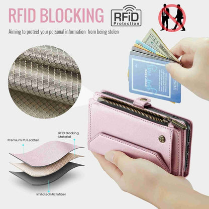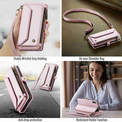For iPhone XS Max CaseMe C36 Card Slots Zipper Wallet RFID Anti-theft Leather Phone Case(Pink)