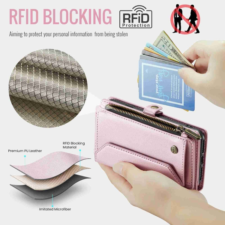 For iPhone XS / X CaseMe C36 Card Slots Zipper Wallet RFID Anti-theft Leather Phone Case(Pink)