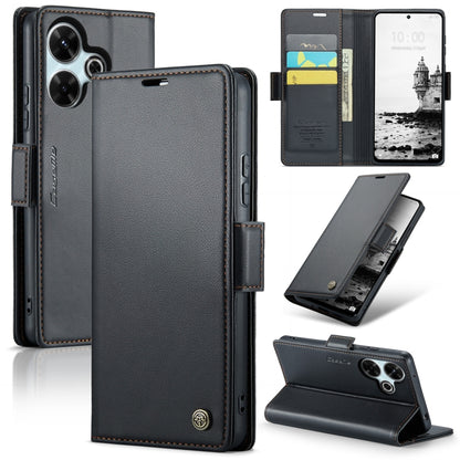 For Redmi 13 CaseMe 023 Butterfly Buckle Litchi Texture RFID Anti-theft Leather Phone Case(Black)