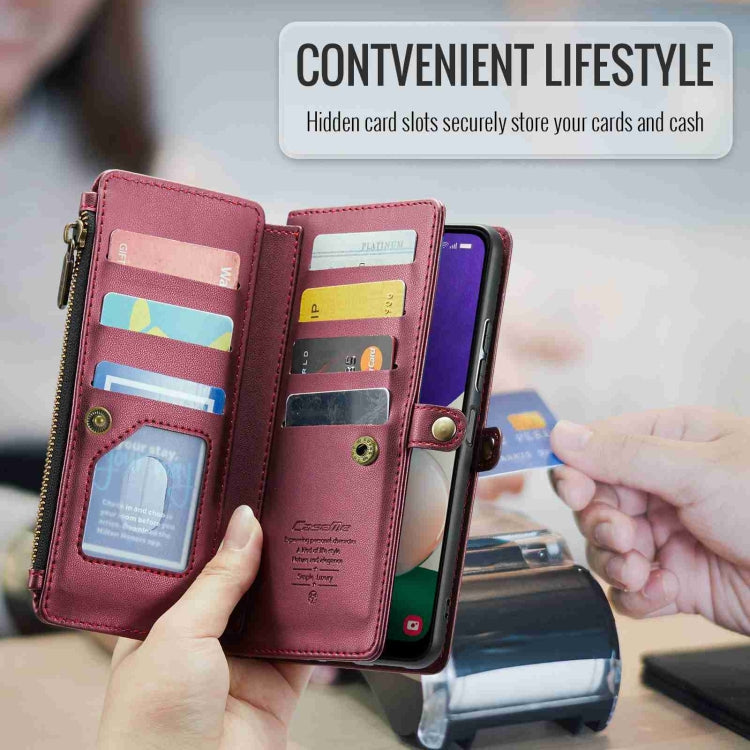 For Samsung Galaxy A22 5G CaseMe C36 Card Slots Zipper Wallet RFID Anti-theft Leather Phone Case(Wine Red)