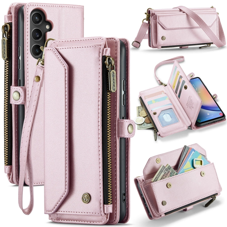 For Samsung Galaxy A34 5G CaseMe C36 Card Slots Zipper Wallet RFID Anti-theft Leather Phone Case(Pink)