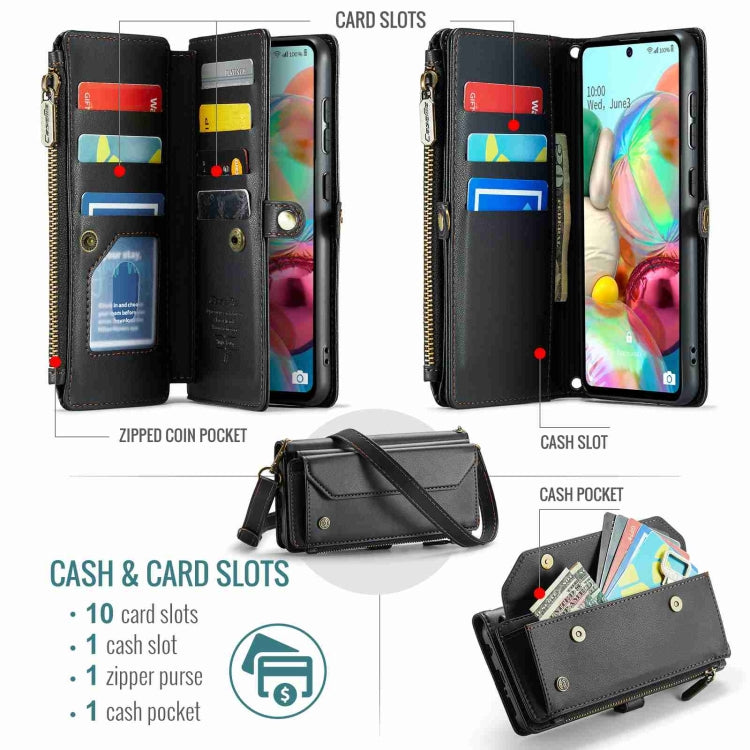 For Samsung Galaxy A71 4G CaseMe C36 Card Slots Zipper Wallet RFID Anti-theft Leather Phone Case(Black)