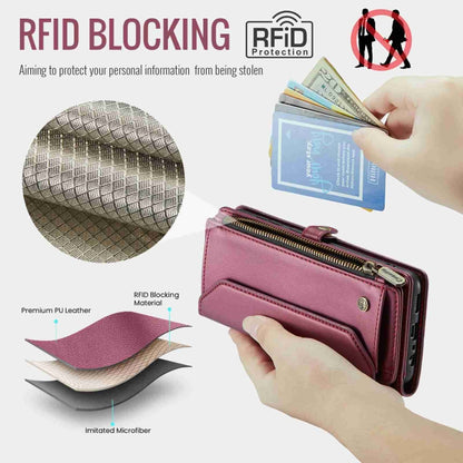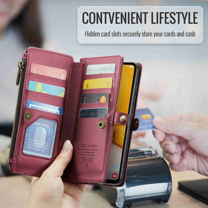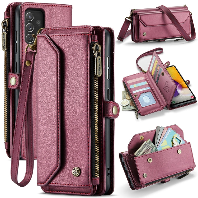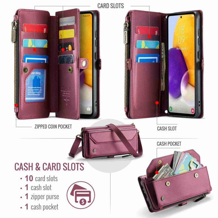 For Samsung Galaxy A72 CaseMe C36 Card Slots Zipper Wallet RFID Anti-theft Leather Phone Case(Wine Red)