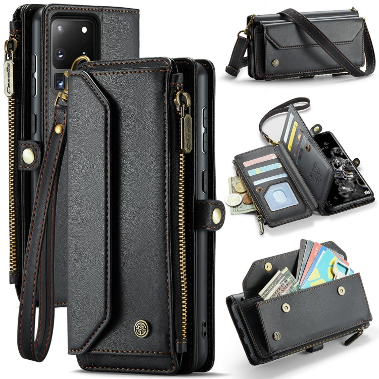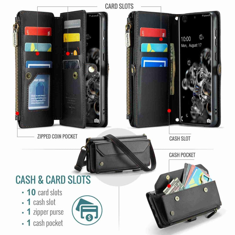 For Samsung Galaxy S20 Ultra CaseMe C36 Card Slots Zipper Wallet RFID Anti-theft Leather Phone Case(Black)