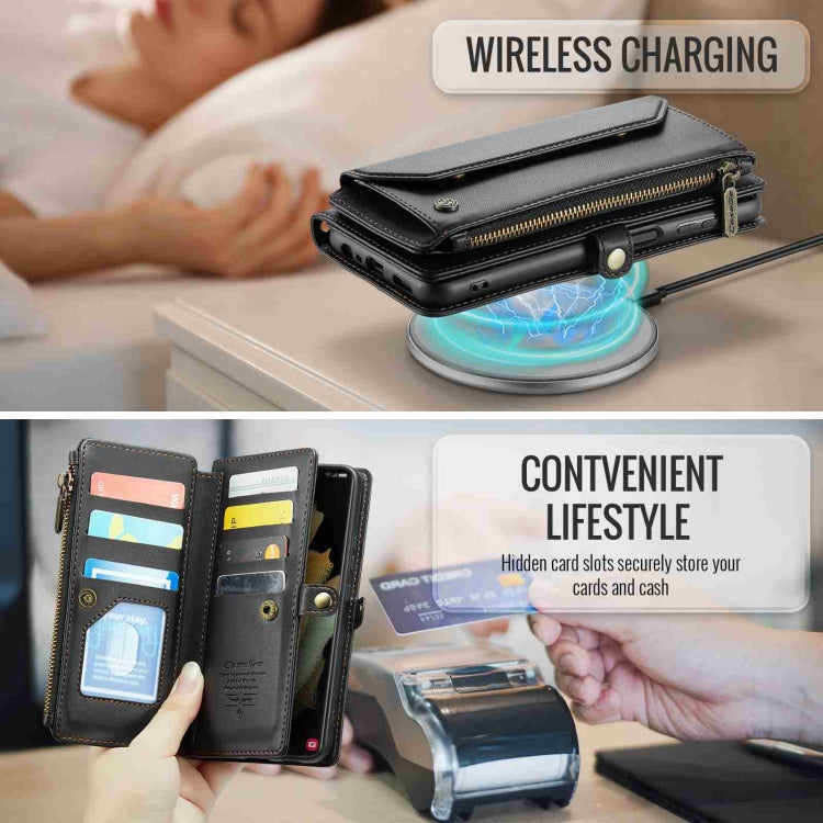 For Samsung Galaxy S21 Ultra 5G CaseMe C36 Card Slots Zipper Wallet RFID Anti-theft Leather Phone Case(Black)