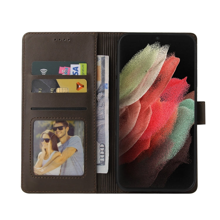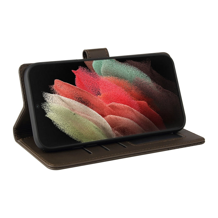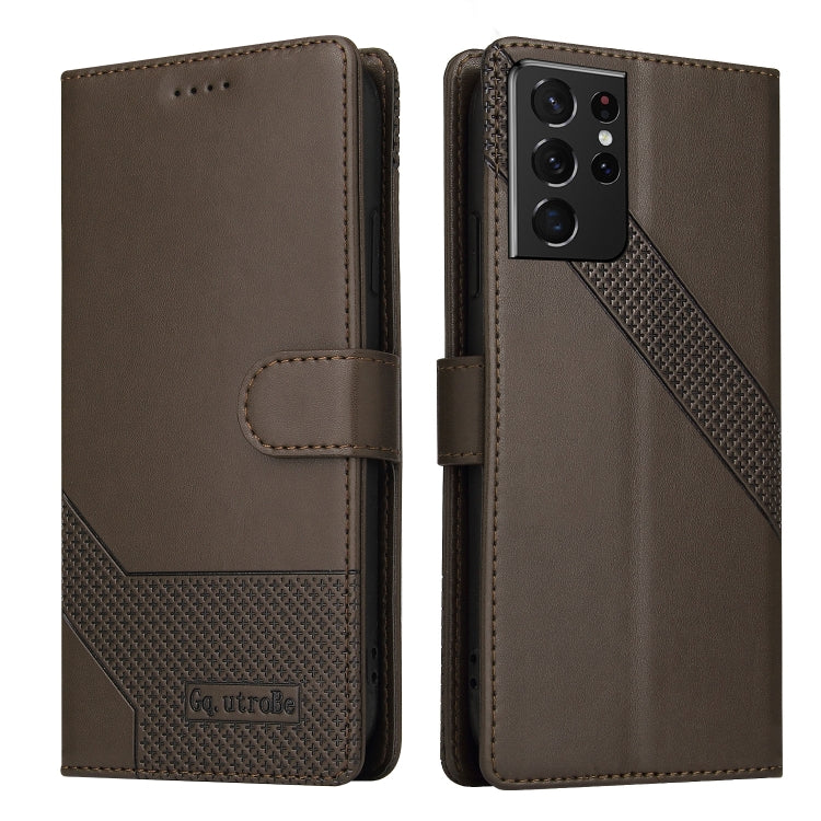 For Samsung Galaxy S21 Ultra 5G GQUTROBE Skin Feel Magnetic Leather Phone Case(Brown)