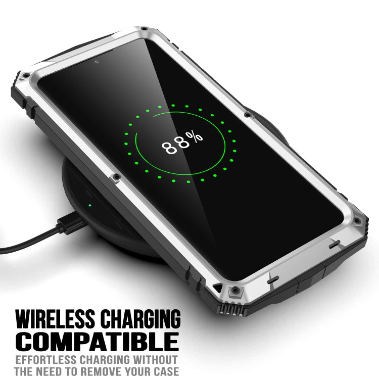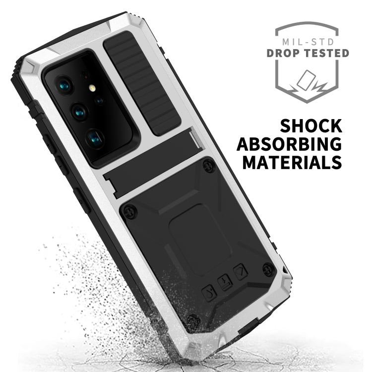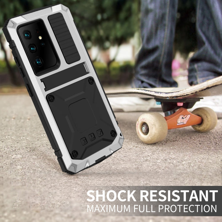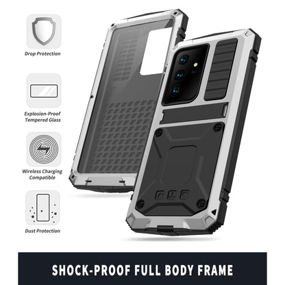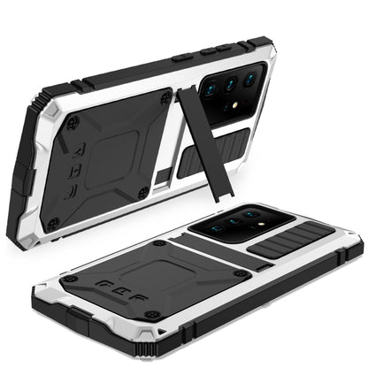 For Samsung Galaxy S21 Ultra 5G R-JUST Shockproof Waterproof Dust-proof Metal + Silicone Protective Case with Holder(Silver)