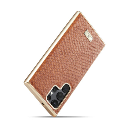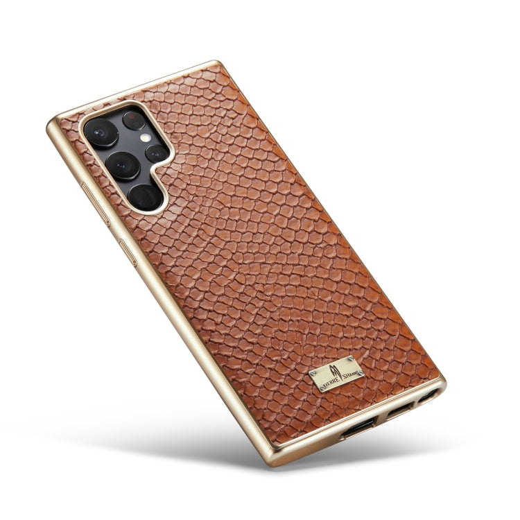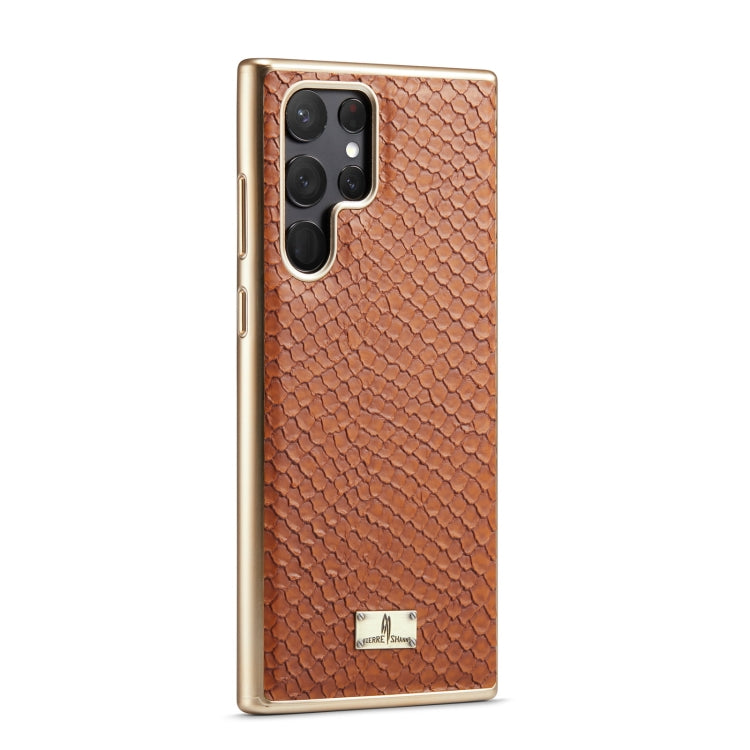 For Samsung Galaxy S22+ 5G Fierre Shann Snake Texture Electroplating PU Phone Case(Brown)
