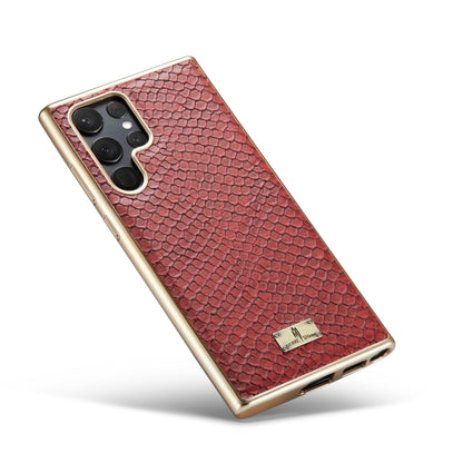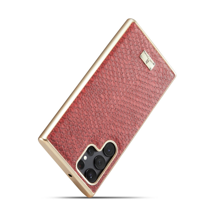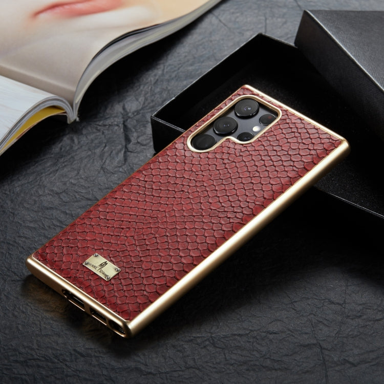 For Samsung Galaxy S22+ 5G Fierre Shann Snake Texture Electroplating PU Phone Case(Red)