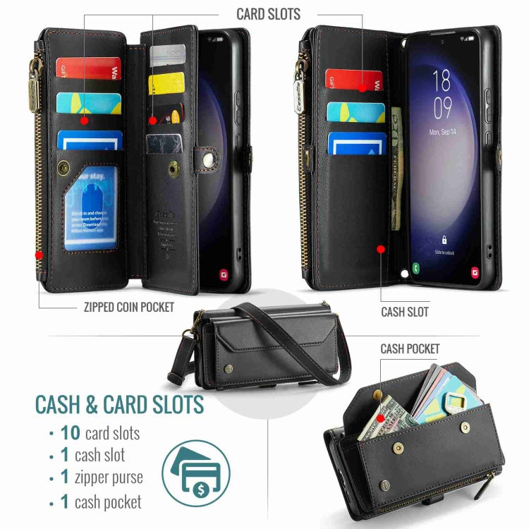 For Samsung Galaxy S23+ 5G CaseMe C36 Card Slots Zipper Wallet RFID Anti-theft Leather Phone Case(Black)