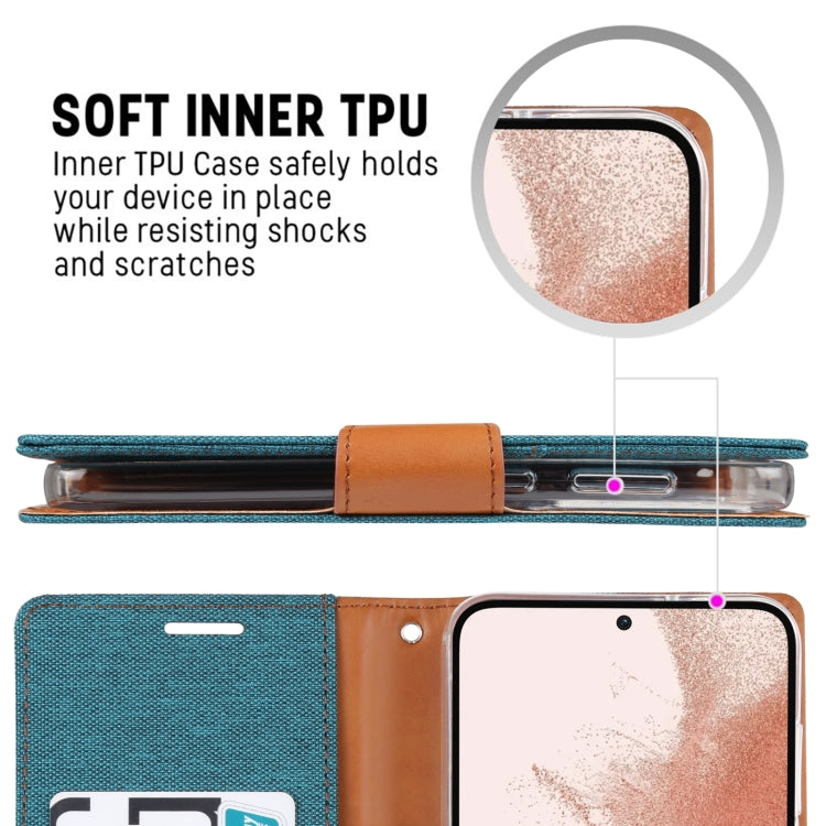 For Samsung Galaxy S23 5G GOOSPERY CANVAS DIARY Fabric Texture Flip Leather Phone Case(Green)