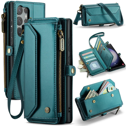 For Samsung Galaxy S23 Ultra 5G CaseMe C36 Card Slots Zipper Wallet RFID Anti-theft Leather Phone Case(Blue-green)