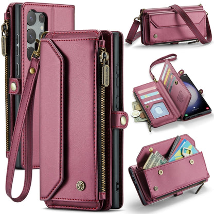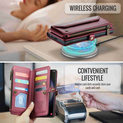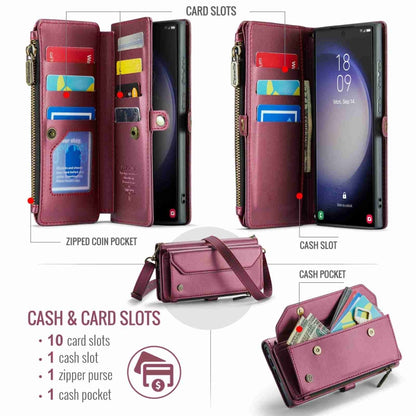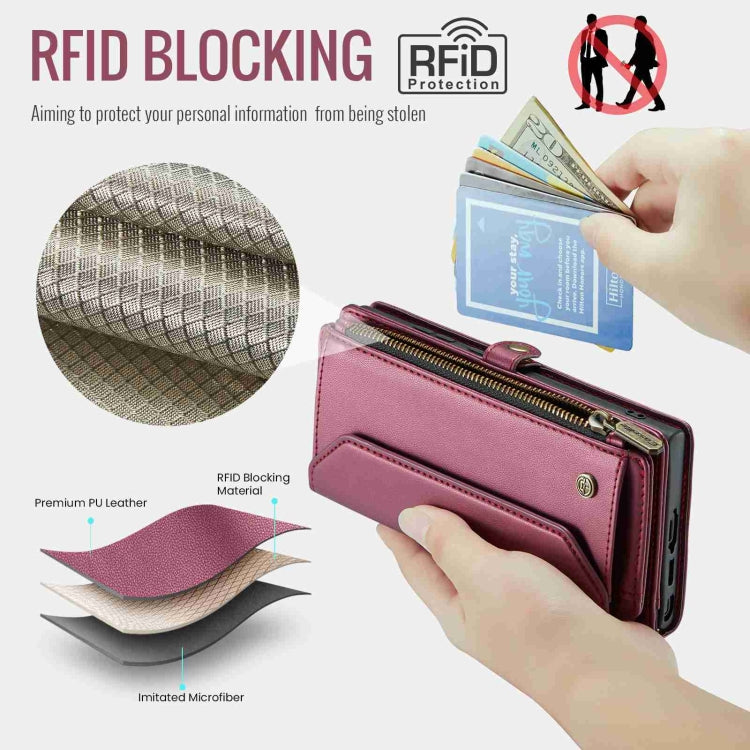For Samsung Galaxy S23 Ultra 5G CaseMe C36 Card Slots Zipper Wallet RFID Anti-theft Leather Phone Case(Wine Red)