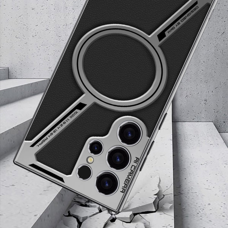 For Samsung Galaxy S24 Ultra 5G GKK Integrated Electroplating Leather Z-Shape MagSafe Phone Case(Carbon Fiber)