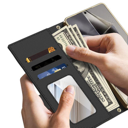 For Samsung Galaxy S24 Ultra 5G GKK Plating Diamond Texture Leather Phone Case With Crossbody Chain(Titanium Gray)