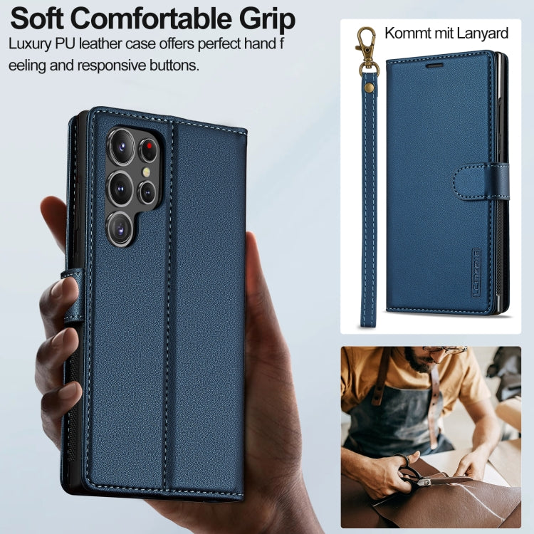 For Samsung Galaxy S24 Ultra 5G LC.IMEEKE L2 Series Detachable Magsafe PU Phone Case with Lanyard(Blue)