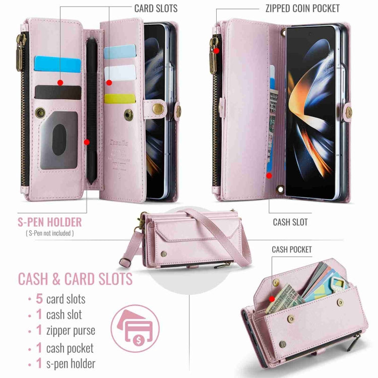 For Samsung Galaxy Z Fold4 CaseMe C36 Card Slots Zipper Wallet RFID Anti-theft Leather Phone Case(Pink)