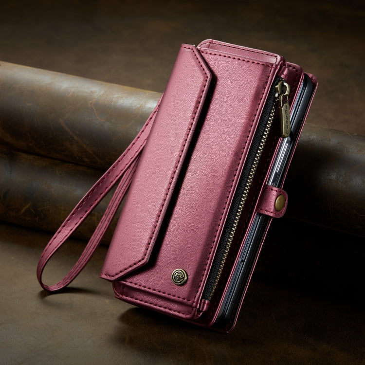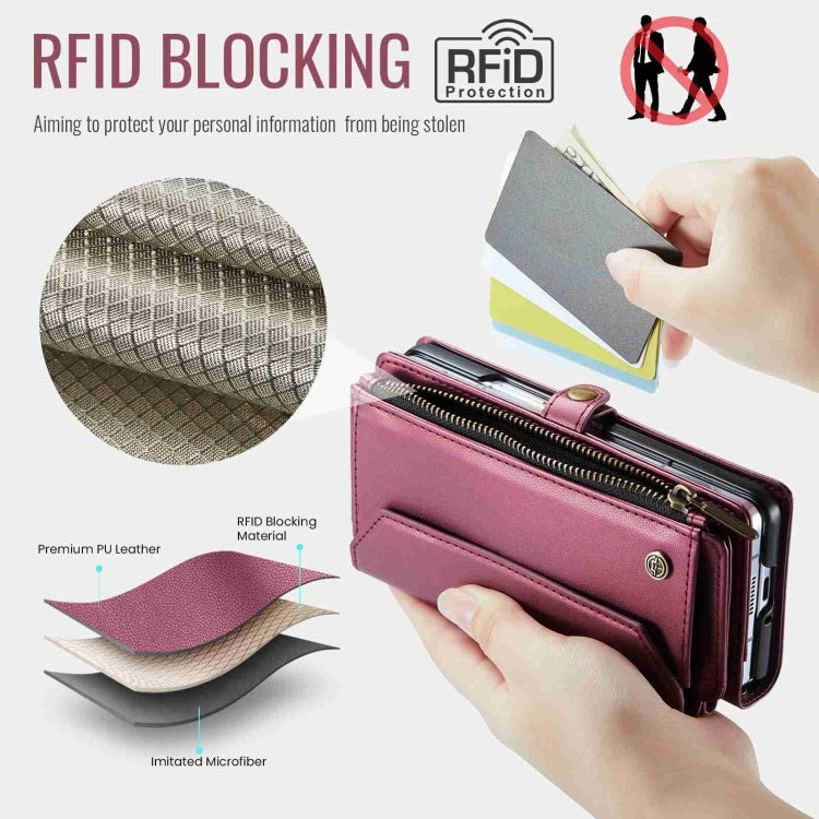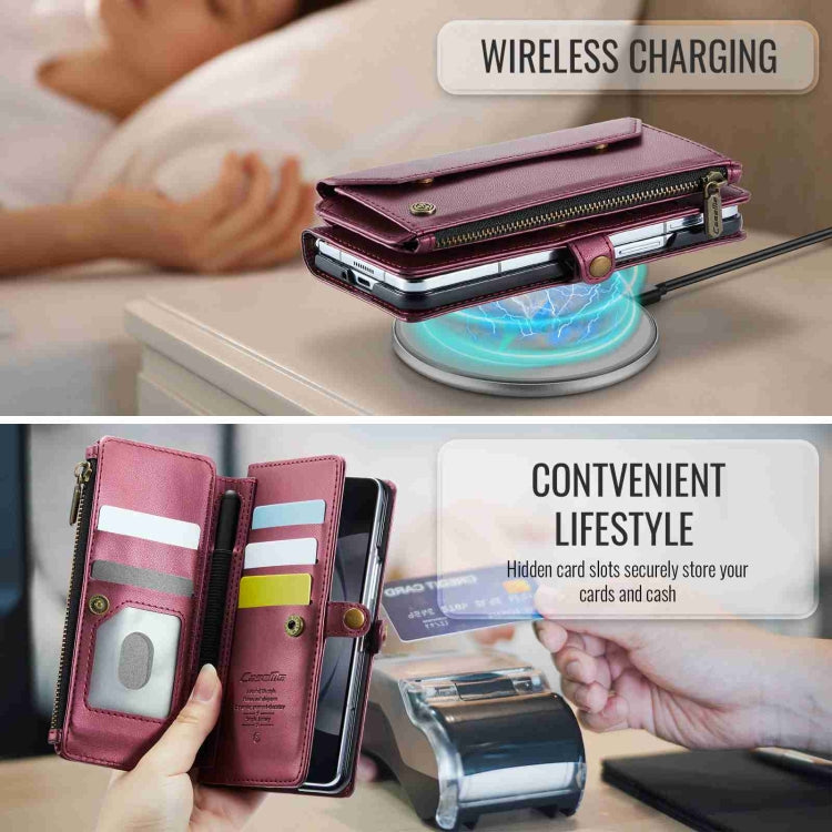 For Samsung Galaxy Z Fold5 CaseMe C36 Card Slots Zipper Wallet RFID Anti-theft Leather Phone Case(Wine Red)
