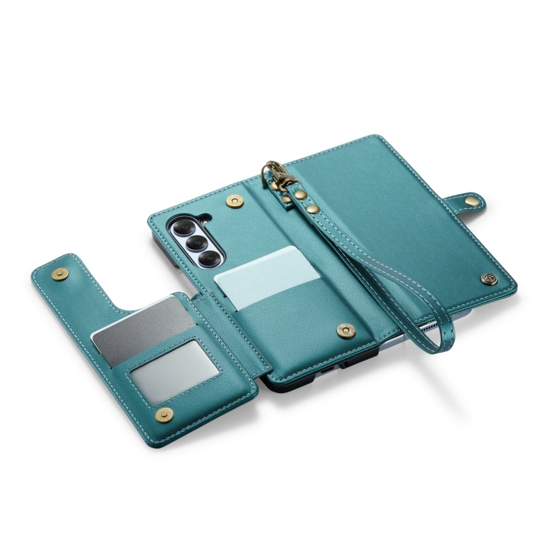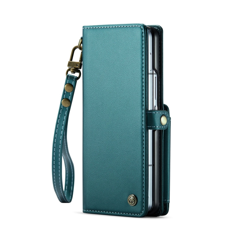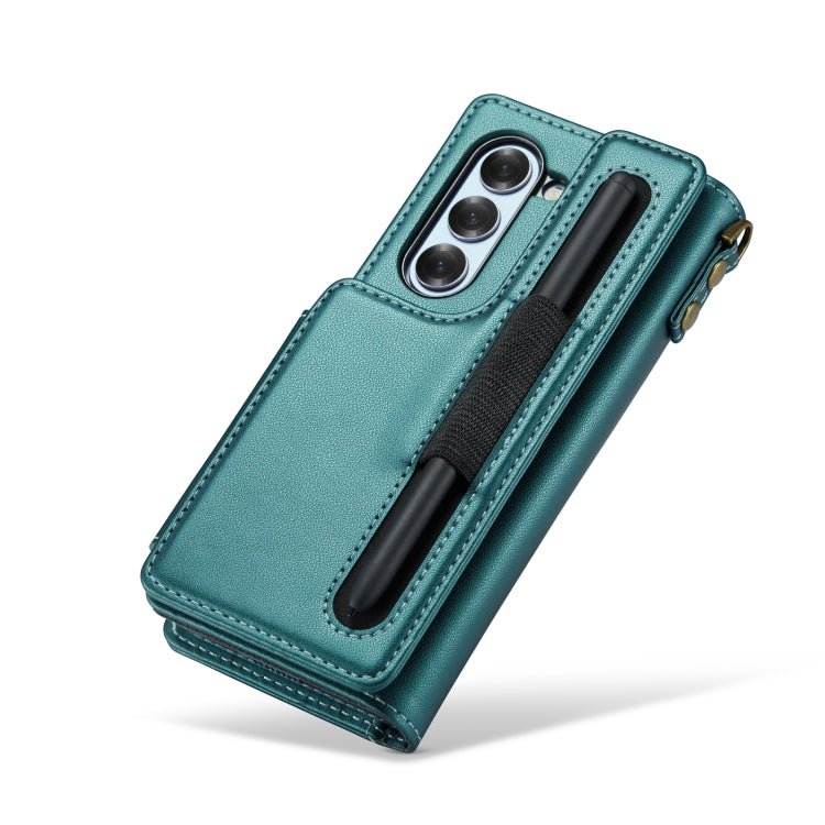 For Samsung Galaxy Z Fold6 5G CaseMe C22 PC+TPU Business Style RFID Anti-theft Lanyard Leather Phone Case with Pen Slot(Blue Green)