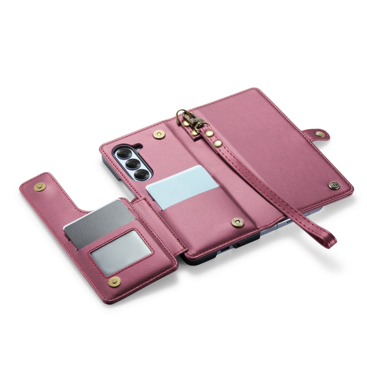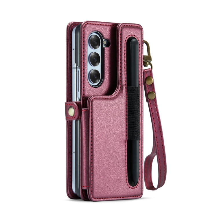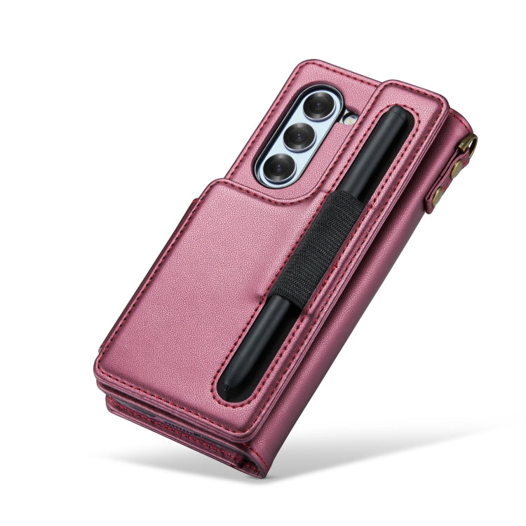 For Samsung Galaxy Z Fold6 5G CaseMe C22 PC+TPU Business Style RFID Anti-theft Lanyard Leather Phone Case with Pen Slot(Wine Red)