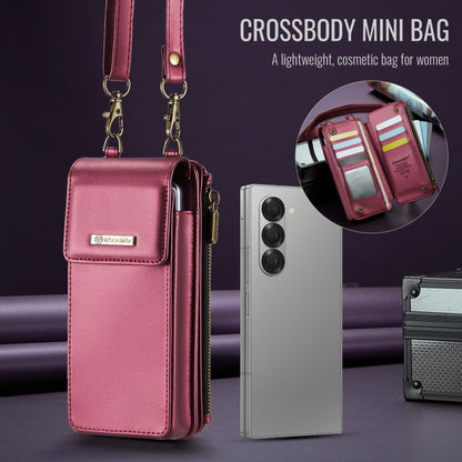 For Samsung Z Fold Series CaseMe Me50 Mini Lanyard Universal Bag(Wine Red)