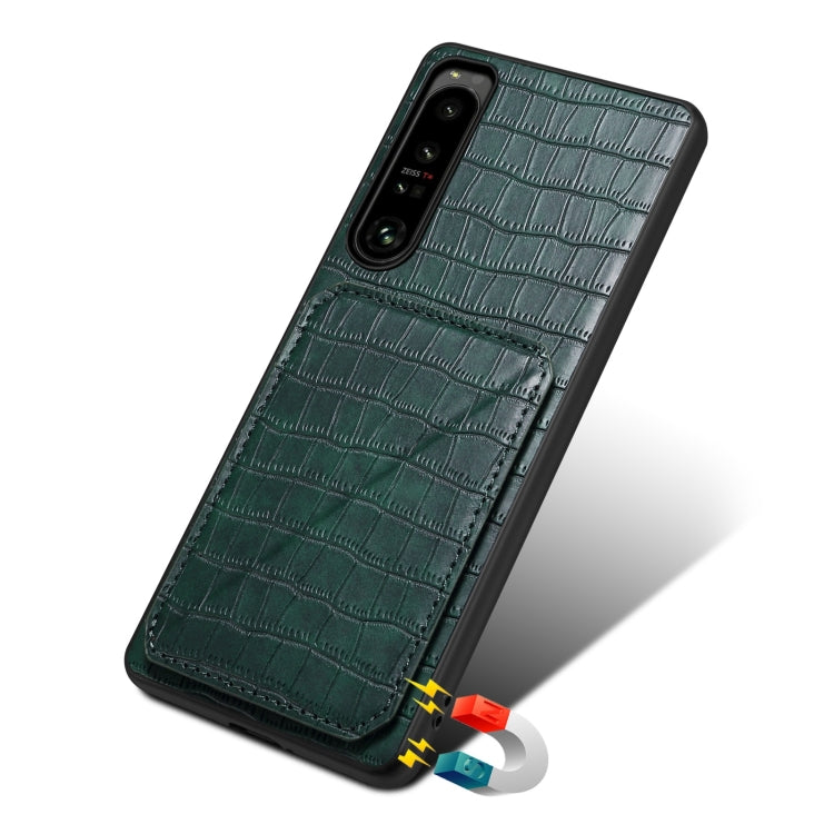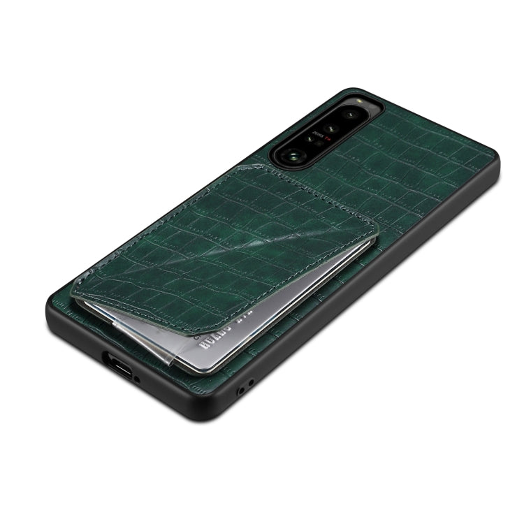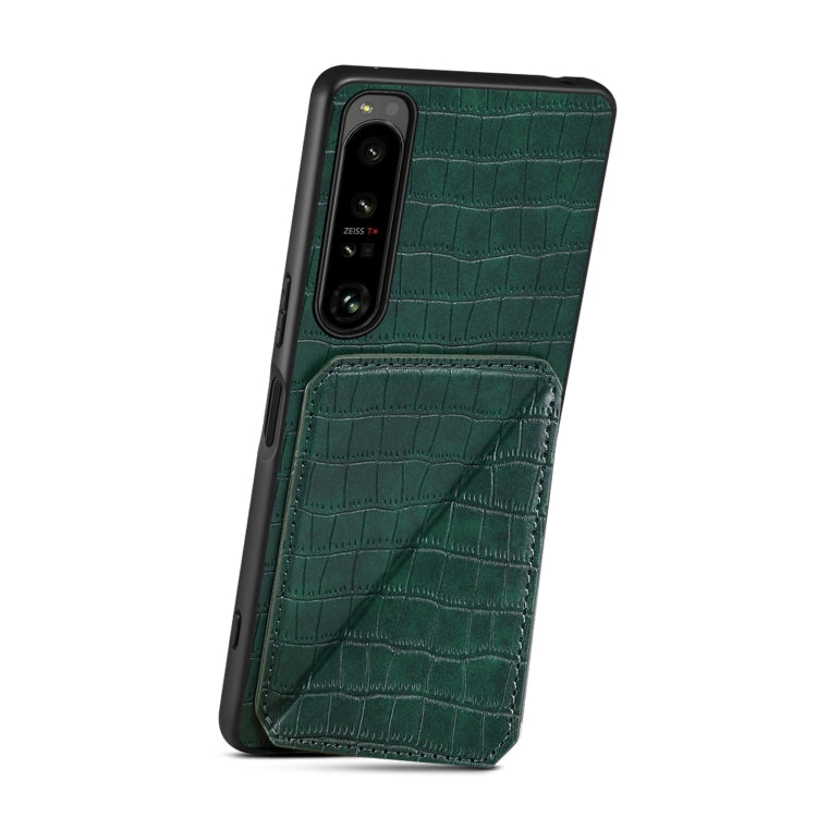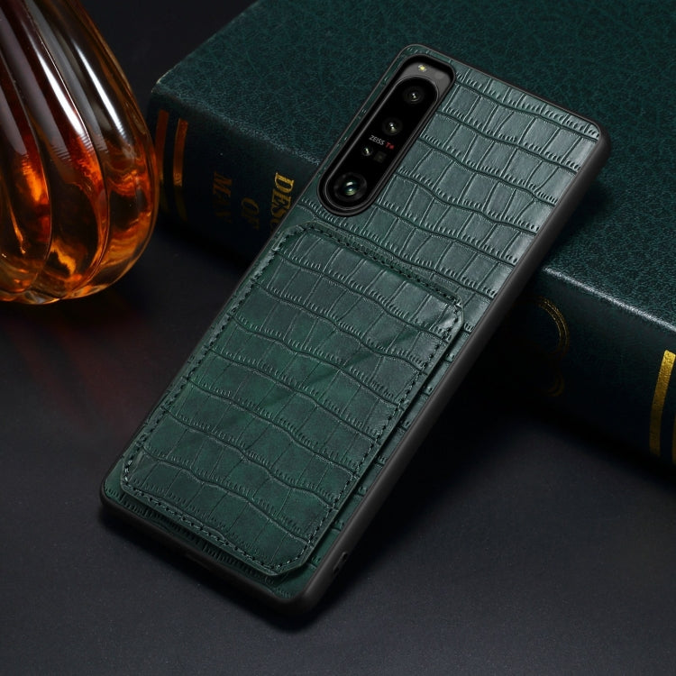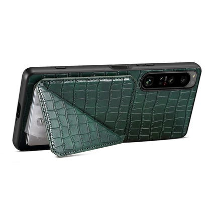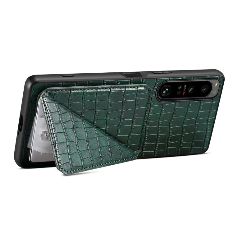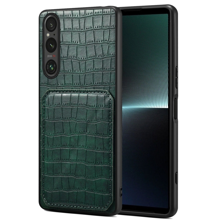 For Sony Xperia 1 V Denior Imitation Crocodile Leather Back Phone Case with Holder(Green)