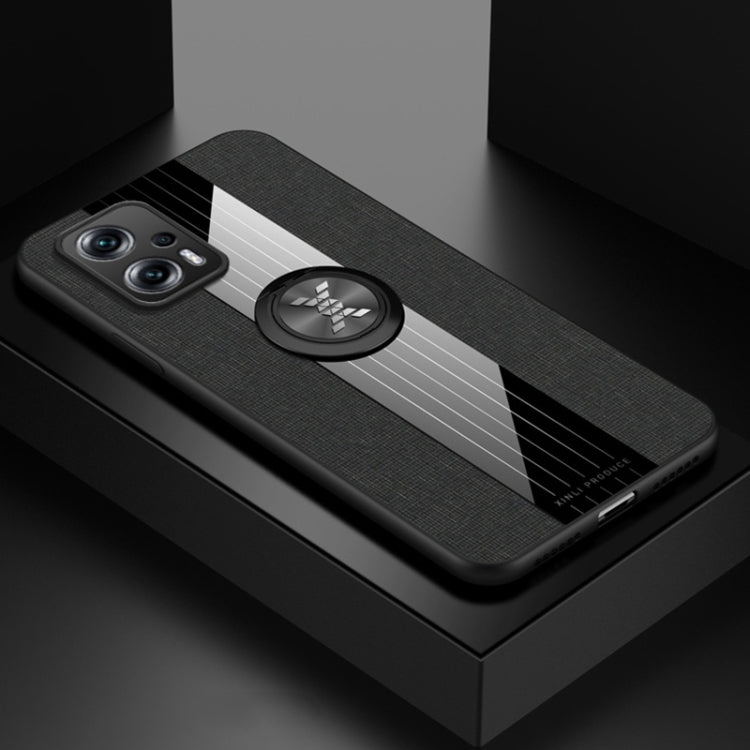 For Xiaomi Redmi Note 11T Pro XINLI Stitching Cloth Textue TPU Phone Case with Ring Holder(Black)