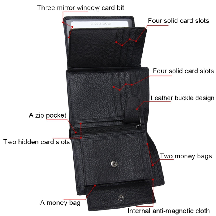 Genuine Cowhide Leather 3-folding Card Holder Wallet RFID Blocking Card Bag Protect Case for Men, Size: 13*10.2*2.5cm