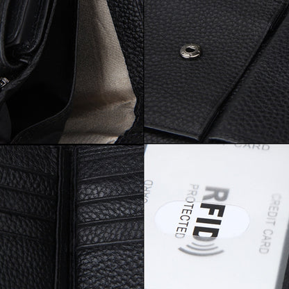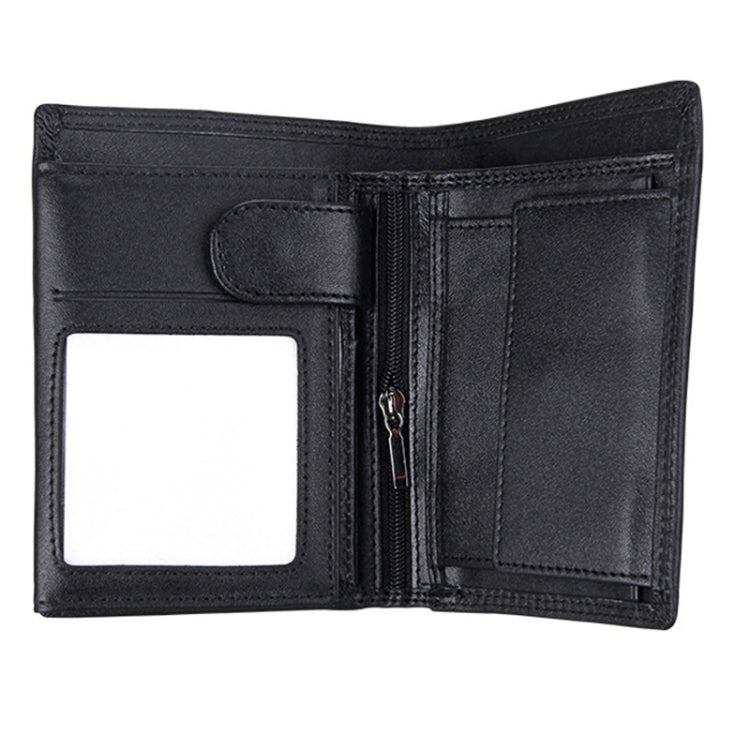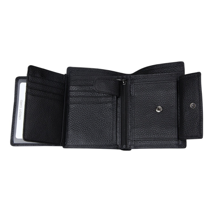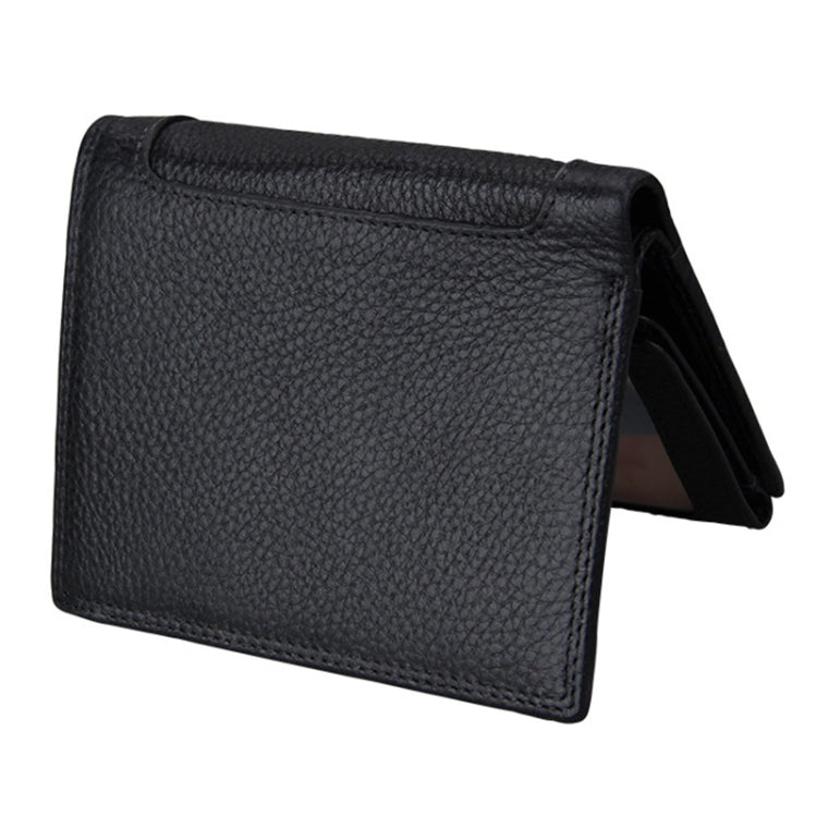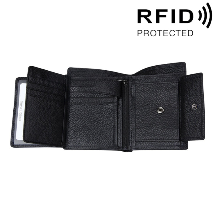 Genuine Cowhide Leather 3-folding Card Holder Wallet RFID Blocking Card Bag Protect Case for Men, Size: 13*10.2*2.5cm(Black)