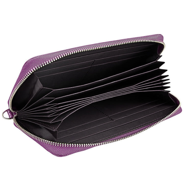 Genuine Cowhide Leather Litchi Texture Zipper Long Style Card Holder Wallet RFID Blocking Coin Purse Card Bag Protect Case with Hand Strap for Women, Size: 20*10.5*3cm(Purple)