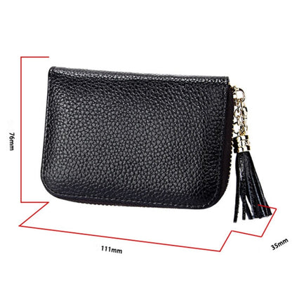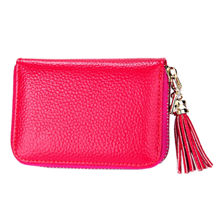 Genuine Cowhide Leather Solid Color Zipper Card Holder Wallet RFID Blocking Card Bag Protect Case Coin Purse with Tassel Pendant & 15 Card Slots for Women, Size: 11.1*7.6*3.5cm(Magenta)