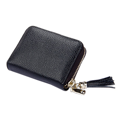 Genuine Cowhide Leather Solid Color Zipper Card Holder Wallet RFID Blocking Card Bag Protect Case Coin Purse with Tassel Pendant & 15 Card Slots for Women, Size: 11.1*7.6*3.5cm(Pink)