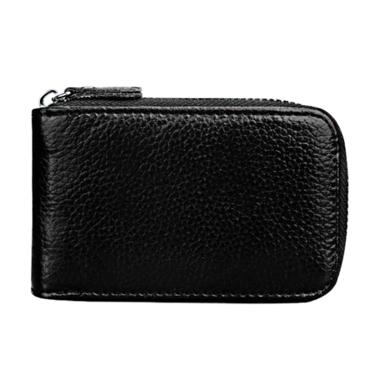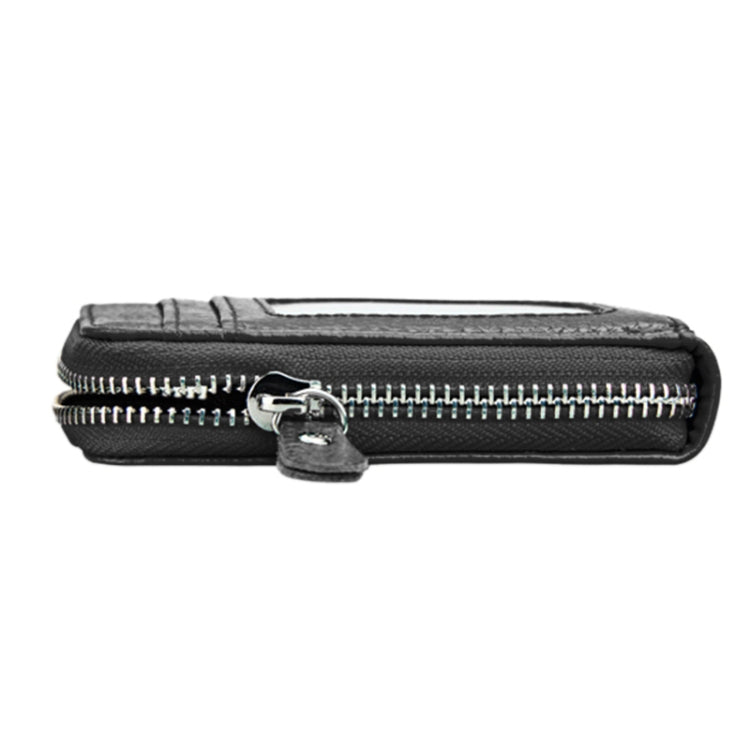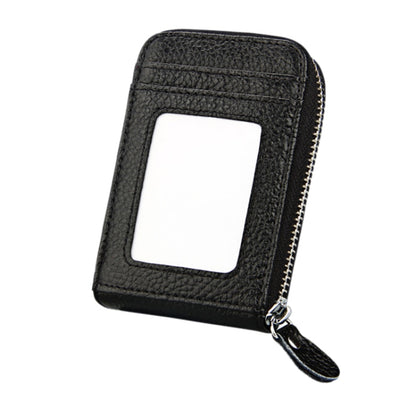 Genuine Cowhide Leather Solid Color Zipper Vertical Card Holder Wallet RFID Blocking Card Bag Protect Case with 12 Card Slots, Size: 11.5*7.5cm(Black)