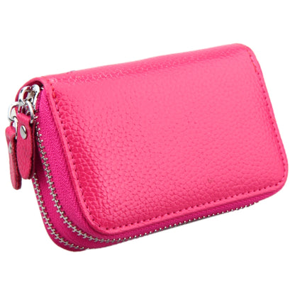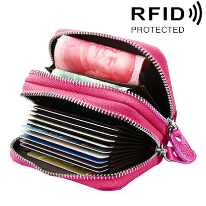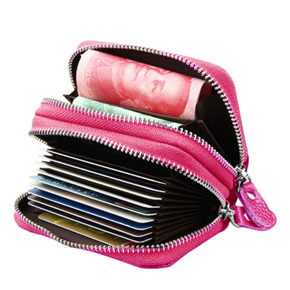 Genuine Leather Dual Layer Zipper Card Holder Wallet RFID Blocking Purse, Size: 10.5x7.0x4.0cm(Magenta)