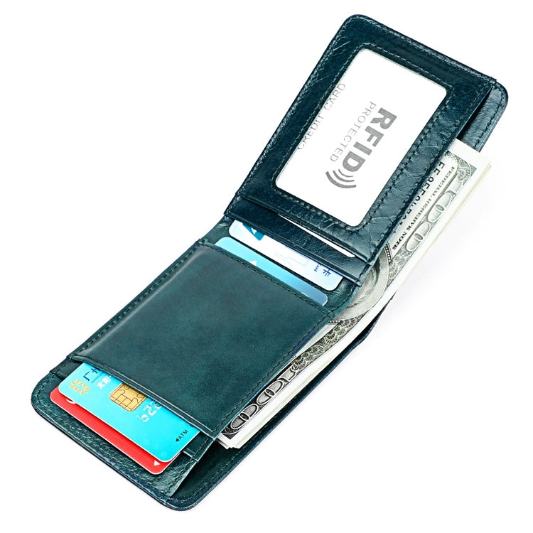KB186 Antimagnetic RFID Mini Crazy Horse Texture Leather Billfold Card Wallet for Men and Women(Blue)