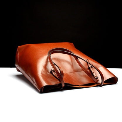 L4002 Trendy Casual Tote Bag Shoulder Women Bag(Vintage Wine Red Horizontal Version)
