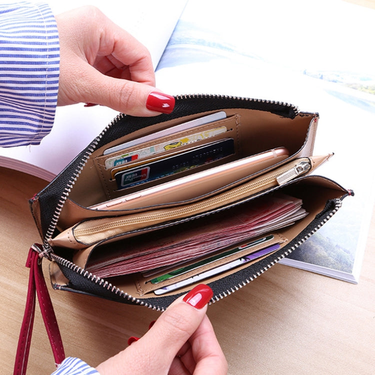 Ladies Long Zipper Multi-Card Slot Wallet Multifunctional Wristlet Wallet(Brown)