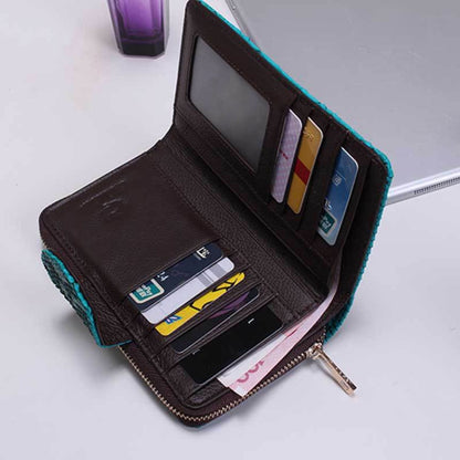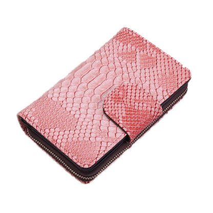 Ladies Python Texture Leather Clutch Embossed Zipper Wallet(Cherry Pink)