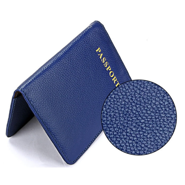 Litchi Texture Multifunctional Genuine Leather Passport Package for travel(Blue)