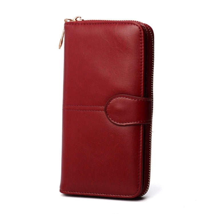 Multifunction Zipper Women Leather Wallet Long Trifold Coin Purse Card Holder Clutch(Red Wine)