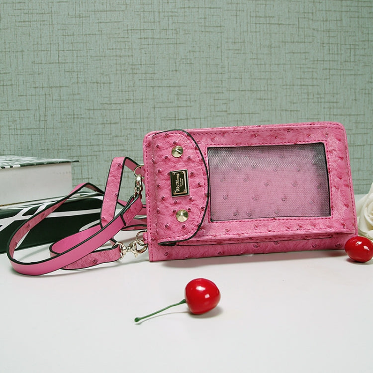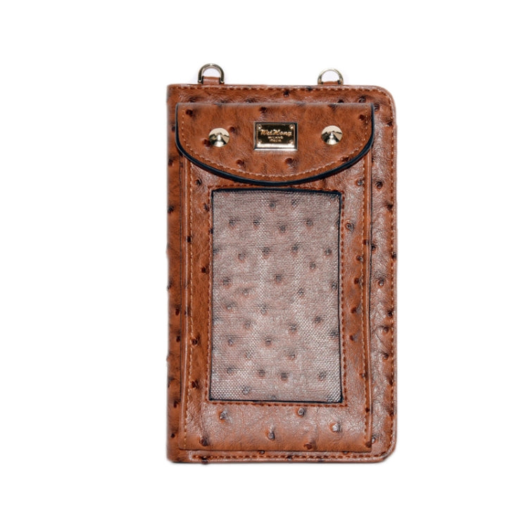 Multifunctional Touch Screen Hanging Neck Ostrich Pattern Mobile Phone Bag Women One-Shoulder Messenger Mini Coin Purse(Brown)