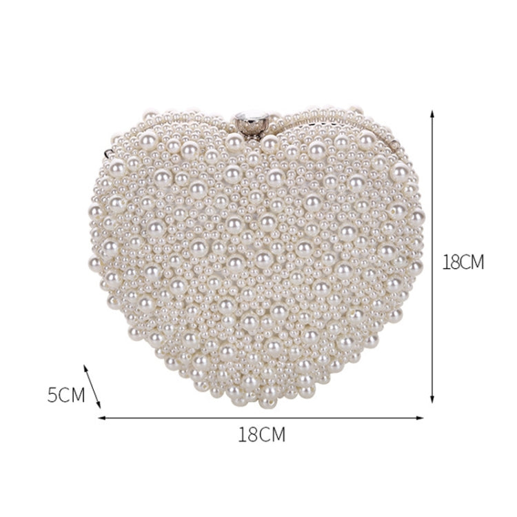 Pearl Evening Bag Ladies Heart Shaped Clutch Single Chain Crossbody Bag(White)