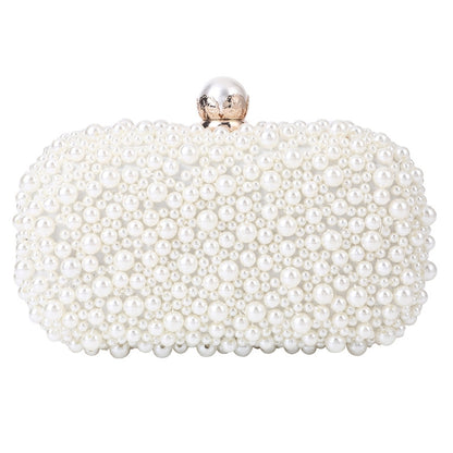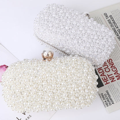 Pearl Evening Bag Soft Face Lock Ladies Shoulder Bag Crossbody Small Square Bag(White)